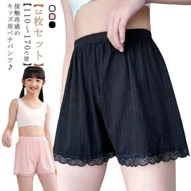 3枚セット 子供 ペチパンツ 女の子 キッズ インナーパンツ ペチコートパンツ 3分丈 薄手 裾レース 子供用 見せパン 透け防止 ペチパン 安全パンツ チラ魅せ 下着 肌着 かわいい 小学生 中学生 高校生 ジュニア 110 120 130 140 150 160 170 送料無料