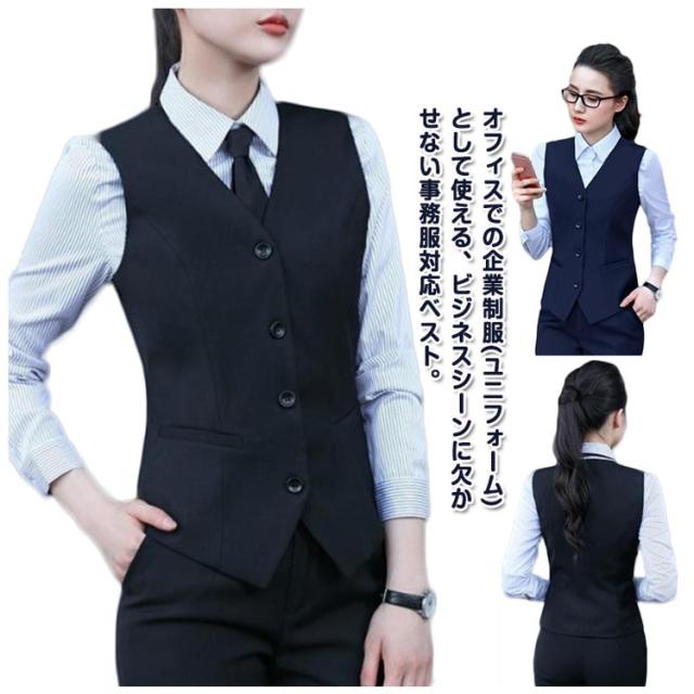 ベスト レディース 事務服 制服 ベスト 単品 洗える 通勤 オフィス OL 企業 ユニフォーム ビジネス 細身 大きいサイズ 小さいサイズ 前開き トップス 黒 ウォッシャブル 法人サービス 女性 オールシーズン対応 洗える 送料無料 入学式 七五三