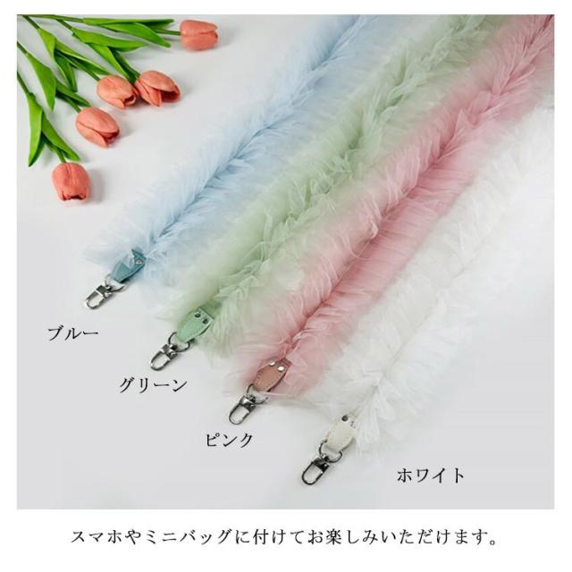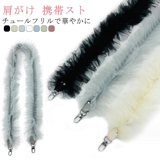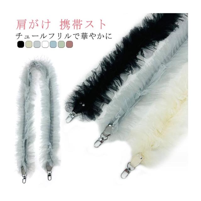 スマホショルダー チュールフリルストラップ バッグストラップ チュール おしゃれ 携帯ストラップ 肩がけ フリル ショルダーストラップ 斜め掛け スマートフォン落下防止 ネックストラップ アクセサリー ストラップ