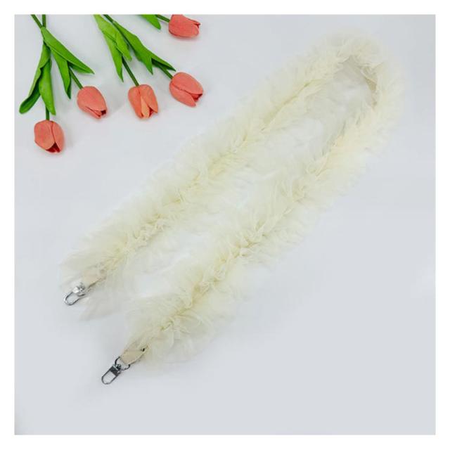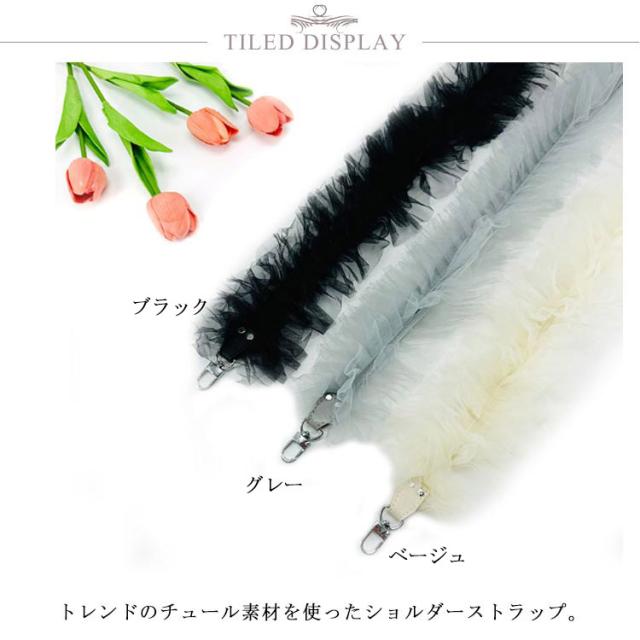 | チュールフリルで華やかに トレンドのチュール素材を使ったショルダーストラップ。 スマホやミニバッグに付けてお楽しみいただけます。 チュールはたっぷりとギャザーを取りボリューミーなフリル感に仕上げました。 フェミニンでドレスライクな気分を味わえるチュールの特別感は、デイリーのみならず、パーティーやオケージョンシーンにもおすすめです。 | |
