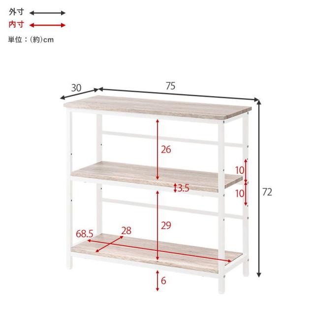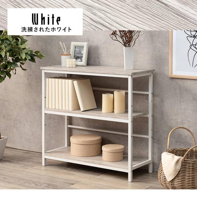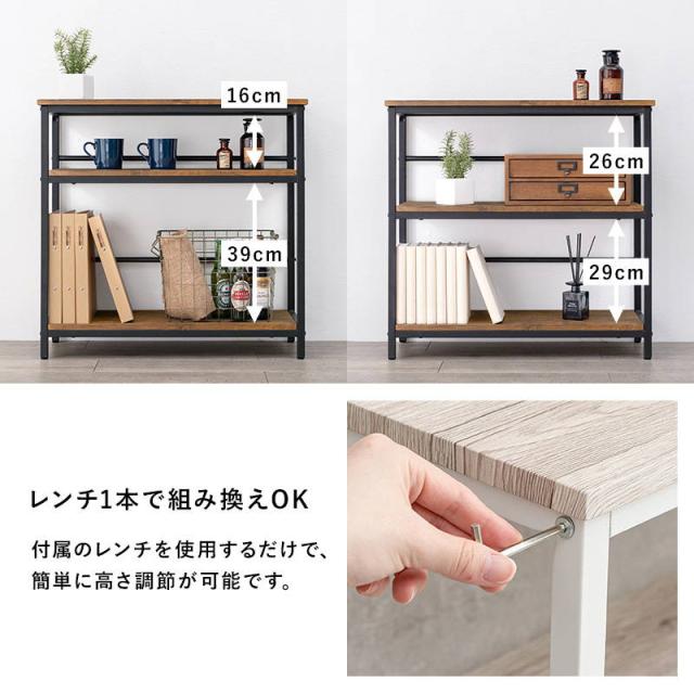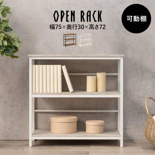 オープンシェルフ オープンラック 収納棚 3段 幅75cm おしゃれ シンプル 木製棚 スチールラック 可動棚付き