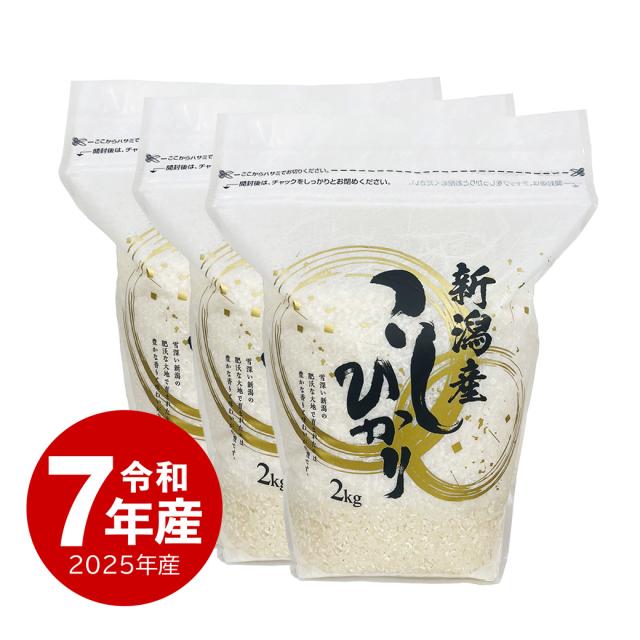 米 新潟県産コシヒカリZIPパック 6kg 令和7年産 白米 保存に便利なチャック付き 2kgx3個 ※沖縄へは別途送料