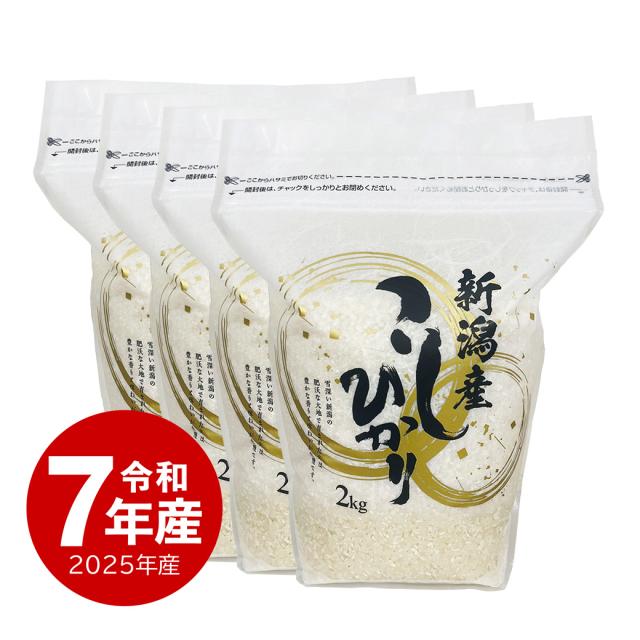 米 新潟県産コシヒカリZIPパック 8kg 令和7年産 白米 保存に便利なチャック付き 2kgx4個 ※沖縄へは別途送料
