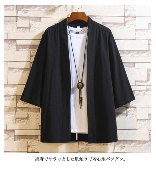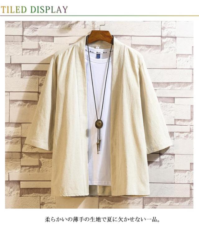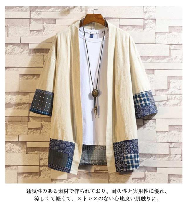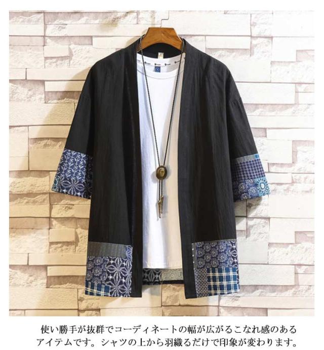 夏 Tシャツ ジャケット 羽織 切り替え カーディガン 2タイプ 開襟シャツ カーディガン 七分袖 アウター 無地 7分袖 麻 着物風 メンズ 柄 中華風 パーカー シャツ ゆったり 大きいサイズ トップス カジュアル メンズ