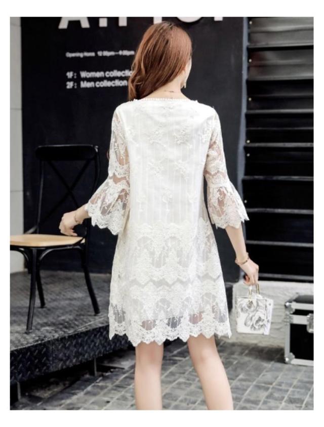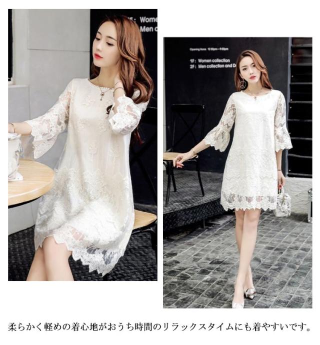レースワンピース ワンピース 夏 ロングワンピース 7分袖 透け感 レディース 膝丈ワンピース シースルー 体型カバー きれいめ 着?せ 大人女性 卒業式 入学式 大きいサイズ レース 可愛い ギフト プレゼント かわいい 送料無料
