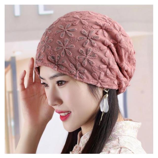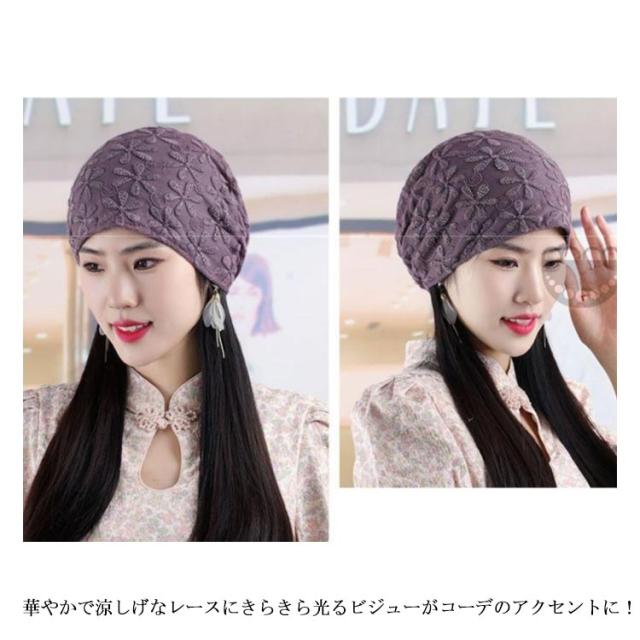 レースヘアキャップ レディース 帽子 楽天 ヘアキャップ ケア帽子 医療用帽子 レース 通気性 エレガント 蒸れにくい ワッチキャップ 夏 夏用 サマーニット帽 ストレッチ 白髪 隠し 花 かわいい 花柄 フラワー 夏 春