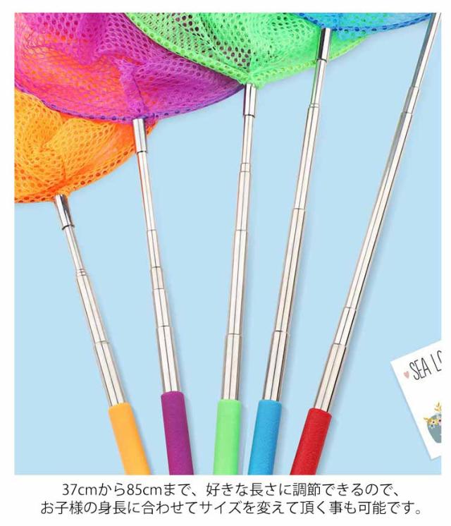 | 魚取りや昆虫採集などに◎伸縮式の虫とり網です。 縮めてコンパクトに持ち運びができ、使いたいときにさっと伸ばせます。 お子様の川遊びの小魚取りにも使用できます。お子様の夏休みの昆虫採集にピッタリ! 37cmから85cmまで、好きな長さに調節できるので、お子様の身長に合わせてサイズを変えて頂く事も可能です。 また、ブルー・ピンク・レッド・オレンジ・パープル・グリーン・イエローの全7種類のカラーがございます。 | |