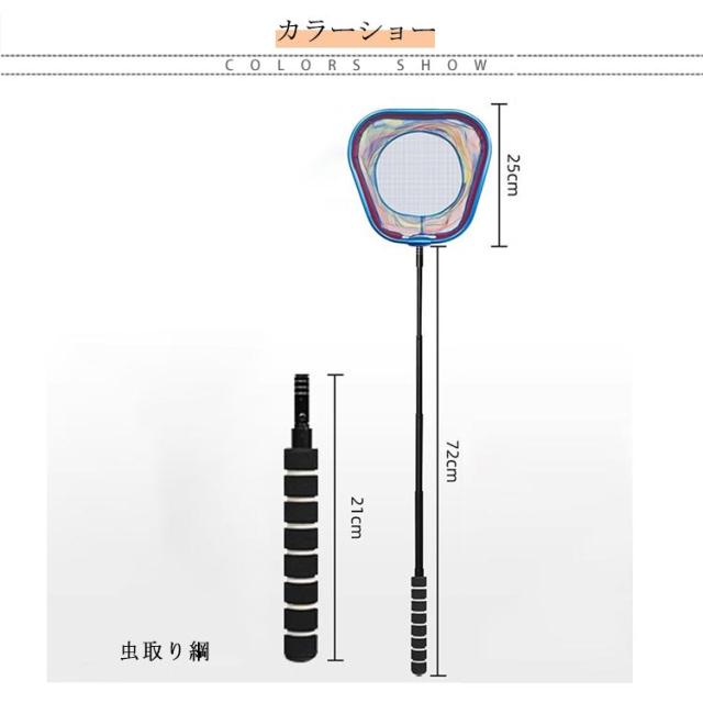| サイズについての説明 | 全長:72+25cm 収縮時:21+25cm 網の幅:25cm ※サイズ表の実寸法は商品によって1-3cm程度の誤差がある場合がございます。 |