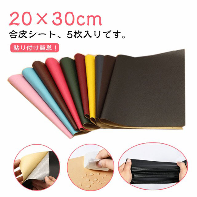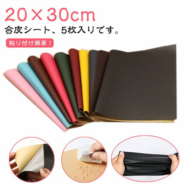 合皮補修シート 合皮 補修シート 5枚入り 20×30cm ソファー補修 レザー 生地 バイクシート補修 テープ 補修シート 貼るレザー タイプ フェイクレザー生地 ソファ チェア 椅子用 リメイクシート 破れ 裂け 貼るだけ 防水 車 シートカバー 財布 バッグ 修理 修理