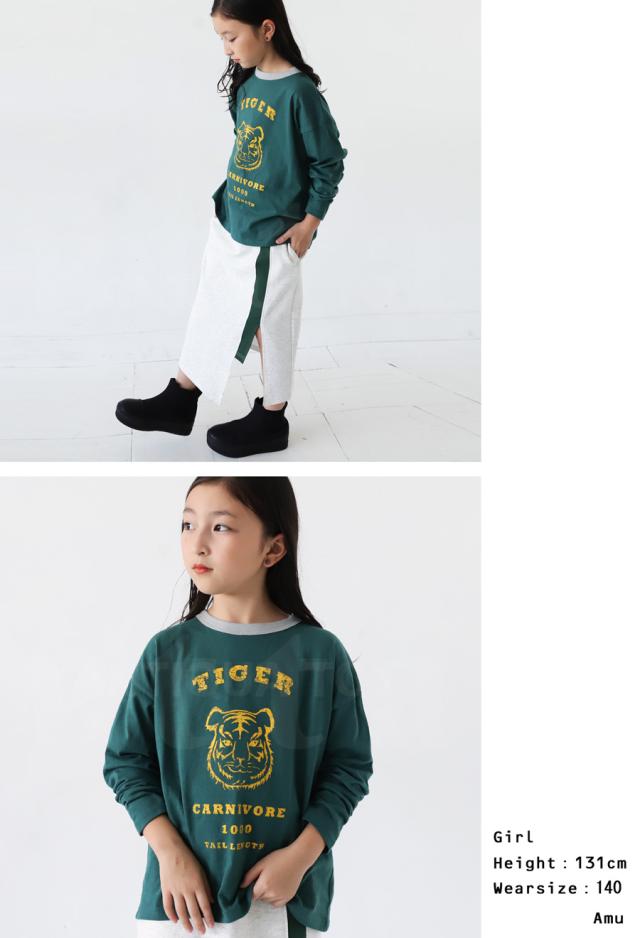 tma-00016j キッズ 子供服 男の子 女の子 ジュニア 高学年 中学生 中高生 綿100 バスク Tシャツ カットソー 丸首 ロゴ アニマル イラスト 古着風 ゆったり シンプル 親子コーデ