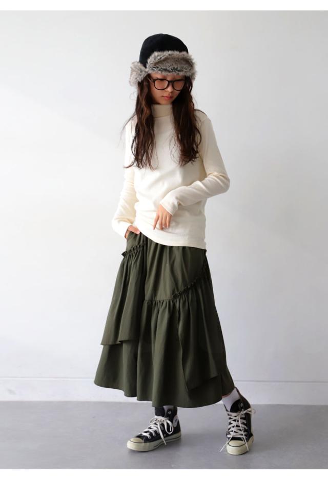 秋から春先まで着用できる、綿混素材のカットソー生地のタートルネックトップス!