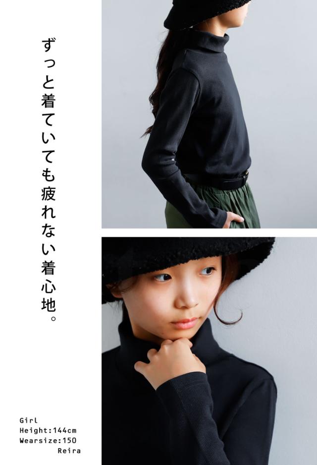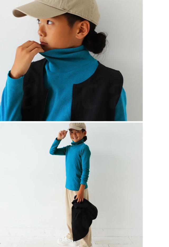 tma-00006j キッズ 子供服 男の子 女の子 ジュニア 高学年 中学生 中高生 リブ タートル カットソー プルオーバー レイヤード インナー タートルネック タートル ハイネック シンプル