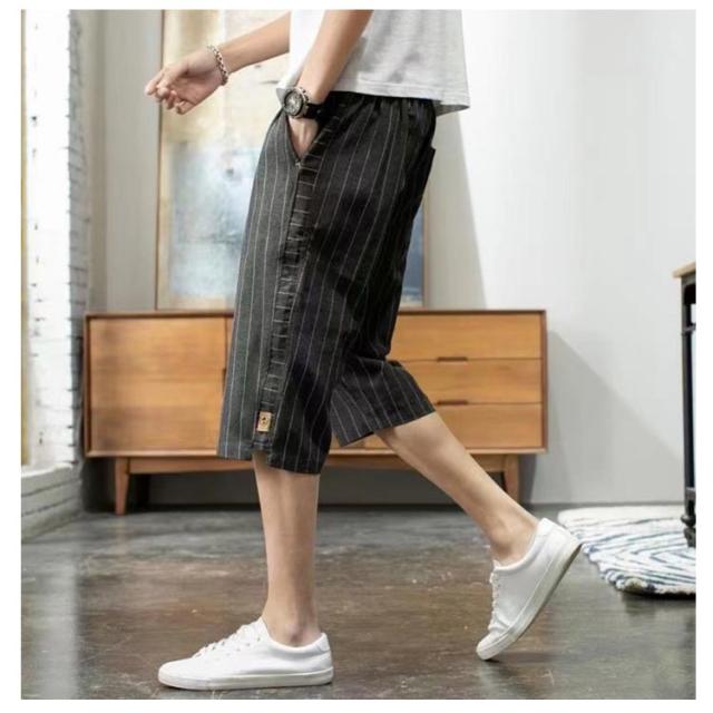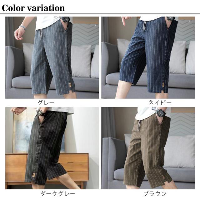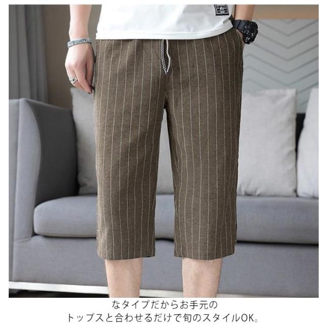 クロップドパンツ メンズ スキニー 7分丈 スキニーパンツ ストライプ柄 夏服 大きいサイズ ストライプ クロップド 紳士服 カジュアル ゴルフパンツ カジュアルパンツ 薄手 スリム 涼しい 夏 テーパード ウエストゴム ポケット付き 通勤 通学 ギフト 送料無料