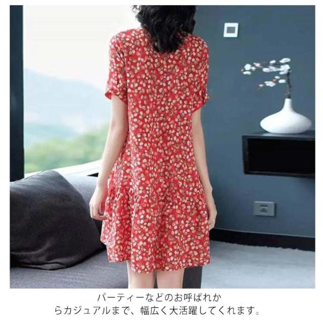 花柄ワンピース ワンピース 夏 レディース 半袖 シフォンワンピース 薄手 軽い 大人女性 総柄 体型カバー 膝上丈 ワンピース ふんわり 可愛い 大人女性 大きいサイズ きれいめ リゾート Aライン ナチュラル 着痩せ 体型カバー 春 旅行 プレゼント ギフト 送料無料
