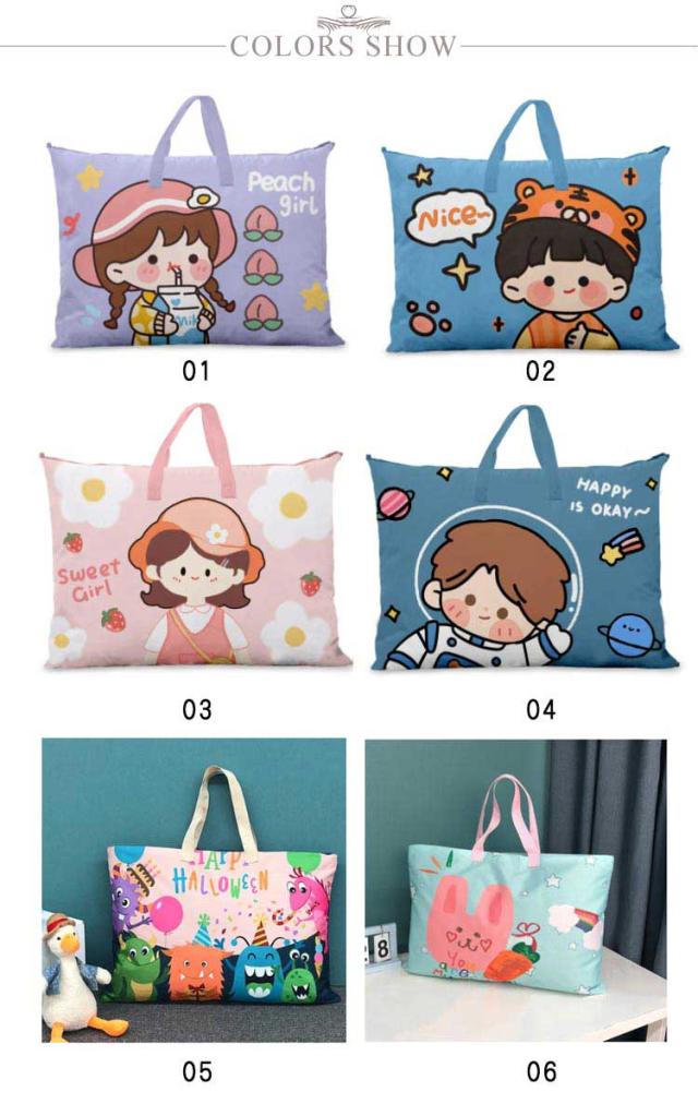 | お子様が好む可愛いデザインのお昼寝布団バッグ! 通園時に荷物が多く、持ち運ぶのが大変なため、かばんの持ち手を長めにとって、肩に掛けられるようにしています。 そうしたら、両手が空くので、お子様を抱っこしたり他の荷物を持つのも楽になります。 嬉しい撥水加工で、雨の日もお使いいただけます。 大容量バッグなので、布団収納、アウトドアや旅行、帰省など荷物が多い時にも利用できて、卒園後も長くお使いいただけます! | |
