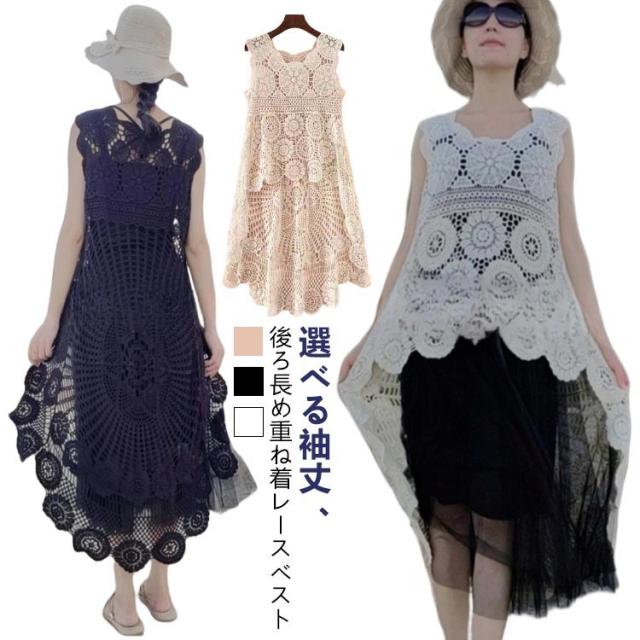 レース ベスト ノースリーブ レースベスト ノースリーブ 半袖 長袖 花柄 刺繍 後ろ長め 重ね着 不規則 ニット ジレ トップス サマーニット 羽織り ロングベスト 総柄 透かし編み 個性的 きれいめ 可愛い レイヤード フリーサイズ 大人女性 かわいい 透け感 ギフト 送料無料