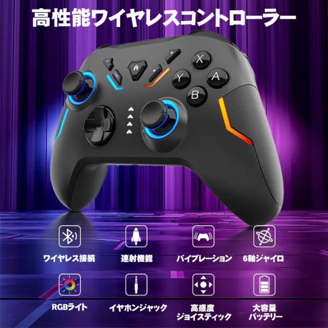 ワイヤレスコントローラー Nintendo Switch Switch lite 有機ELモデル対応 OLED プロコン スマホ PC ジャイロセンサー 大容量バッテリー 1200mAh 連射機能 RGBライト ブラック ホワイト