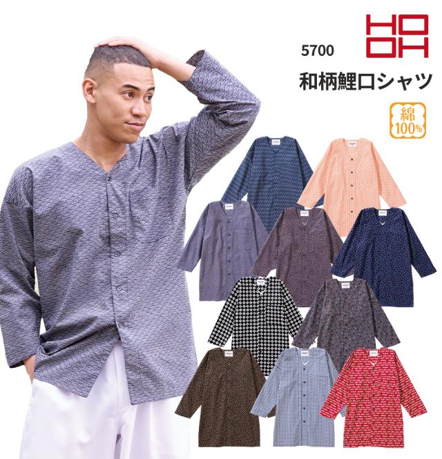 作業着 ユニフォーム 村上被服 鳳皇 HOOH 和柄鯉口シャツ 5700 和風ユニホーム 祭り 職人 神輿 粋 蜻蛉 桜 矢絣 唐草 格子
