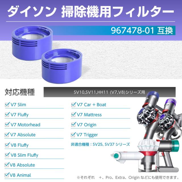 ダイソン フィルター 掃除機 SV10,SV11,HH11 (V7,V8) 【967478-01互換】2個 dyson HEPA 水洗 交換 臭い アレルギー 洗い方 掃除 交換サイン 乾く 乾かない クリーニング 寿命 Slim Origin