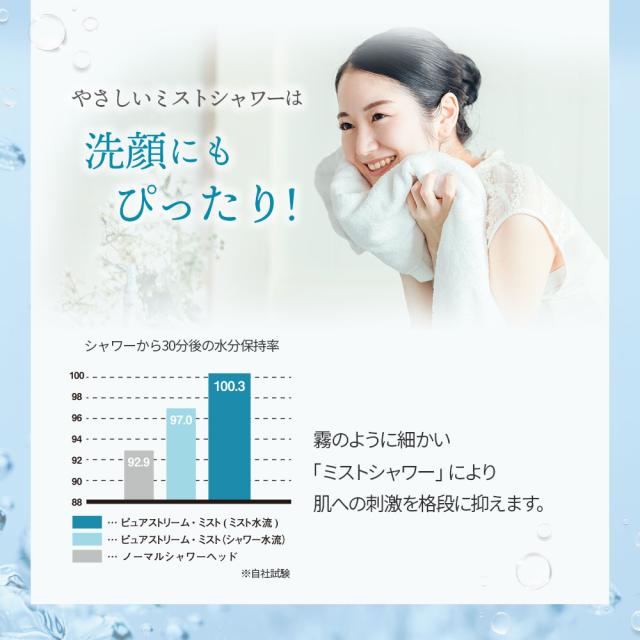 やさしいミストシャワーは、霧のように細かい「ミストシャワー」により肌への刺激を格段に抑えるので洗顔にもぴったり!