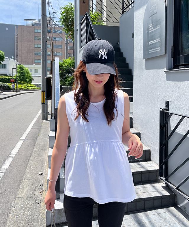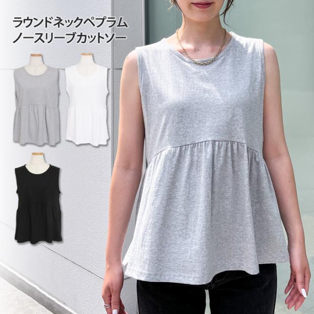 新作 ラウンドネックペプラムノースリーブカットソー レディース トップス コットン 綿 タンクトップ 涼しい 夏 無地 シンプル 薄手 おしゃれ 通勤 オフィス 伸縮 かわいい フレア 体型カバー カジュアル ラフ