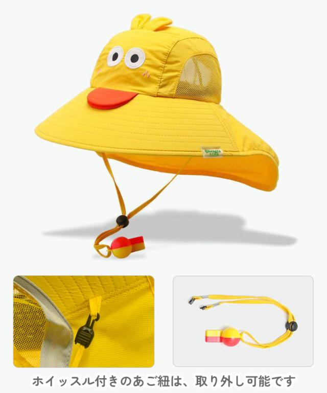 新作 ホイッスル&ストラップ付き モンスター 日よけ キッズ ハット 男の子 女の子 子供 ベビー 赤ちゃん 帽子 サファリハット アドベンチャーハット 子供用 あご紐付き つば広 ネックシェード メッシュ 夏 UV