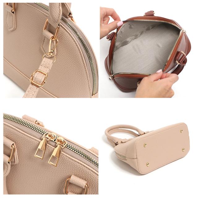 新作 フェイクレザー 2way 横型 ラウンド ハンドバッグ レディース ショルダーバッグ ボストンバッグ 小さめ 小型 おしゃれ 通勤 通学 OL オフィス 自立 きれいめ 上品 可愛い 手持ち 肩掛け 斜めがけ
