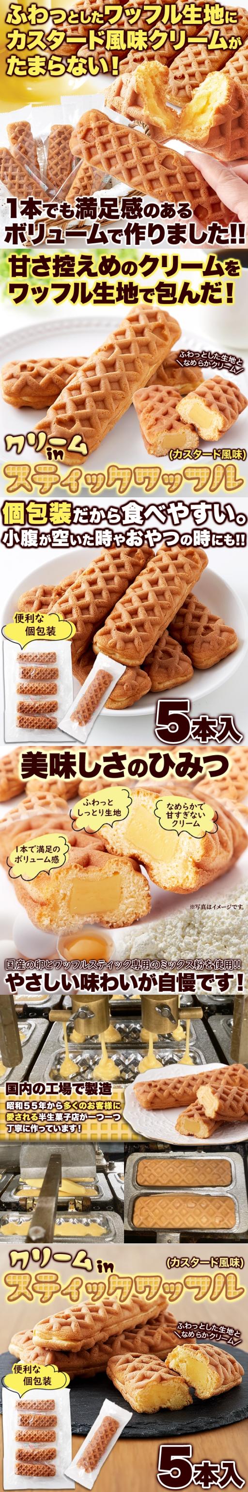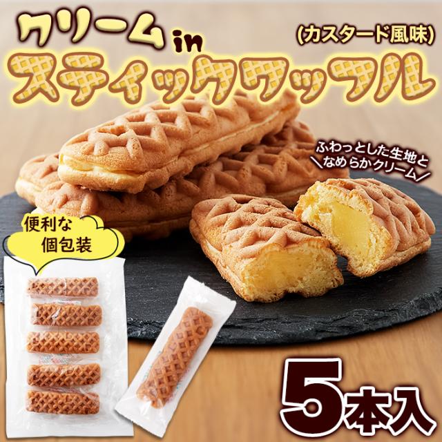 クリームinスティック ワッフル 5本ふわっとしたワッフル生地に カスタード 風味クリーム ネコポス pre