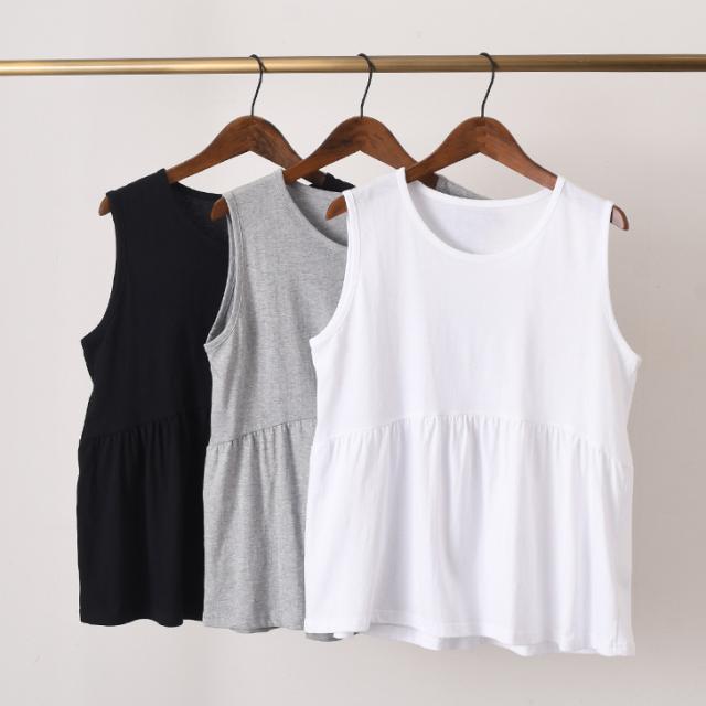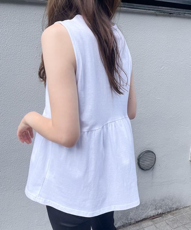 新作 ラウンドネックペプラムノースリーブカットソー レディース トップス コットン 綿 タンクトップ 涼しい 夏 無地 シンプル 薄手 おしゃれ 通勤 オフィス 伸縮 かわいい フレア 体型カバー カジュアル ラフ