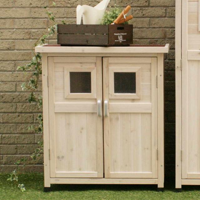 ナチュラルなお庭に馴染む木製収納庫