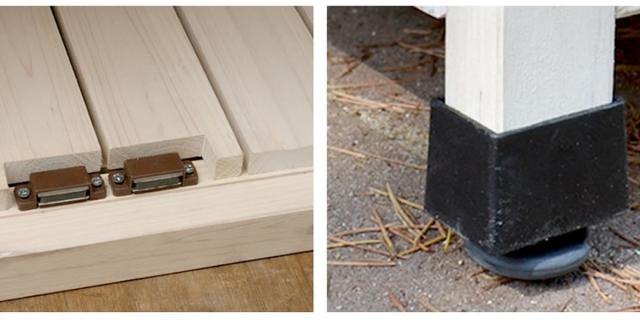 | マグネットでピタッとしまる扉 扉はマグネットでしっかりと閉まるので、風で開く心配もありません。 | アジャスター付き がたつきを調整できます。 |