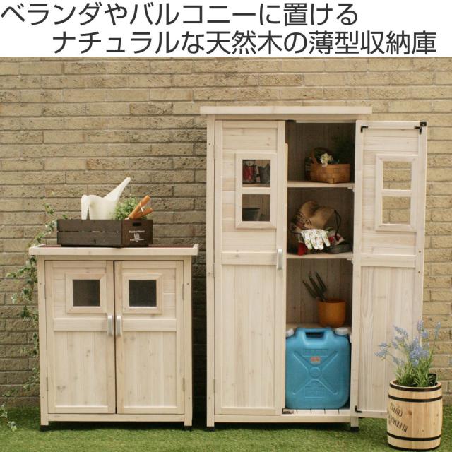 物置 ベランダ薄型収納庫 高さ92cm 木製 ( 屋外 屋外物置 約 幅 80 cm 木製物置 ベランダ 物置き 屋外収納 収納 ラック おしゃれ 収納棚 天然木 ガーデン ガレージ 庭用品 マグネット扉 ストッカー ガーデンストッカー )
