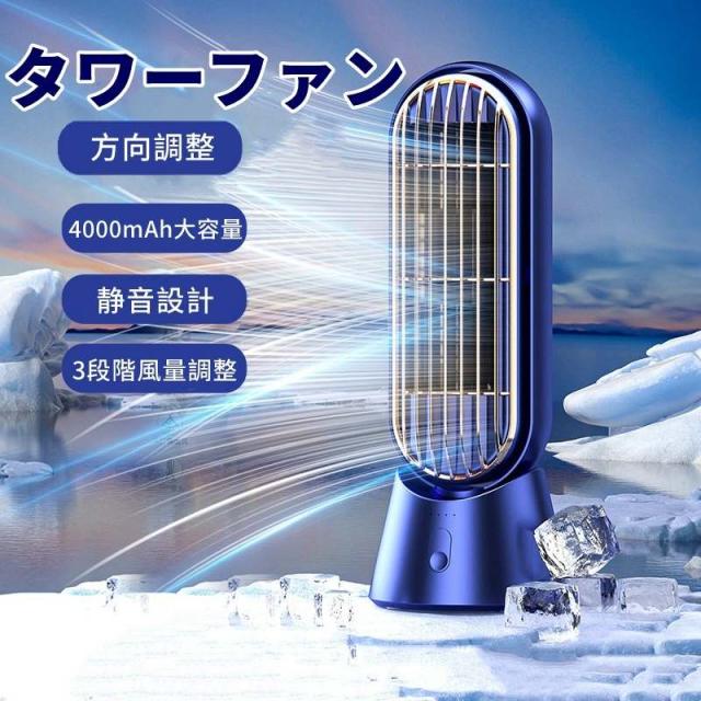 タワーファン 卓上 扇風機 小型 羽なし バッテリー充電式 卓上扇風機 小型4000mAh大容量 左右自動首振り スリム扇風機 3段階風量調節 パワフル送風 ミニ扇風機 デスクファン 省スペース