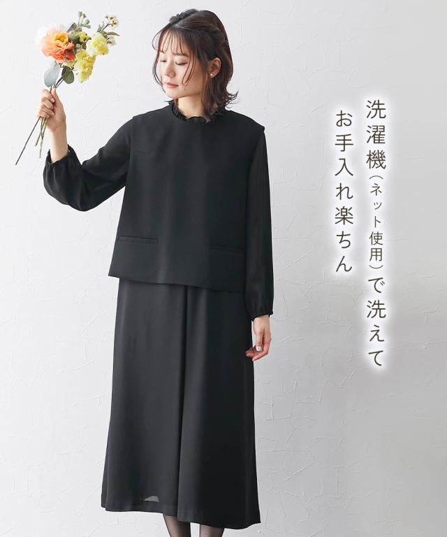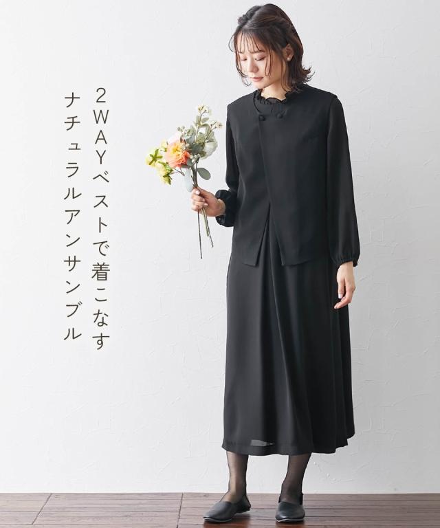 喪服 礼服 ブラックフォーマル ワンピース レディース 洗える防しわナチュラル2WAY ベスト + アンサンブル 有〔Neina〕 冠婚葬祭 M/L ニッセン nissen