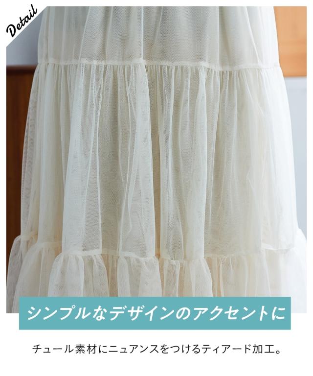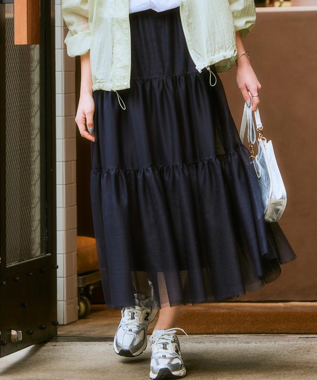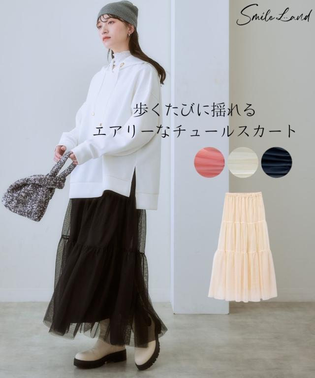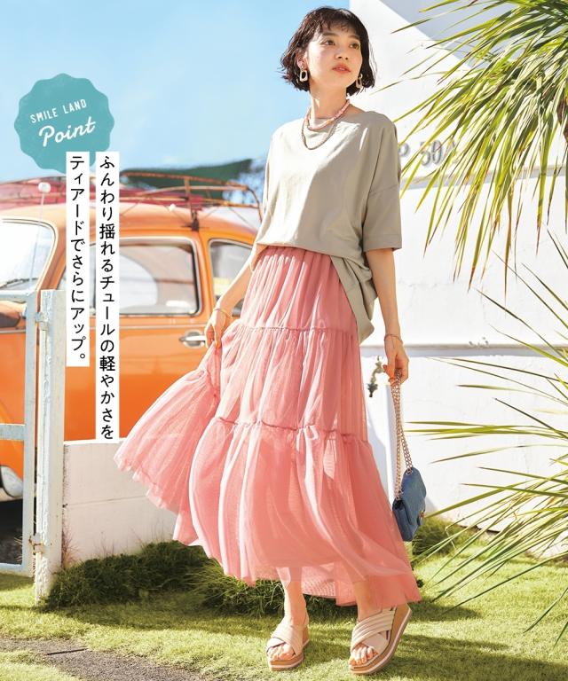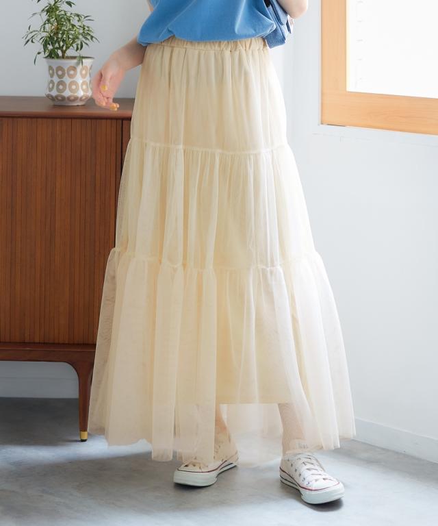 歩くたびにふんわり。ティアードシルエットのチュールスカート ■デザイン 歩くたびに揺れる、エアリーなチュールスカート。3段のティアードデザインで、ボリューム感がありながらも軽やかな印象に。ウエストはゴム仕様で楽な履き心地。繊細なチュールにティアードデザインが大人フェミニンな雰囲気に仕上がります。 ■素材 トレンド真っ最中のチュール素材。季節問わず着用できるので、1年間着回し可能です。ヘビロテ間違いなしなので色違いで持っていても後悔しません。 ■おすすめのスタイリング ドレッシーに決めても、スニーカーやスウェットでカジュアルダウンしても可愛い。トップスをインしてウエストデザインを強調するとスタイルアップも期待できます。夏らしいサンダルやカゴバックなど小物を付け足すだけでシーズンムード高まる仕上がりに。