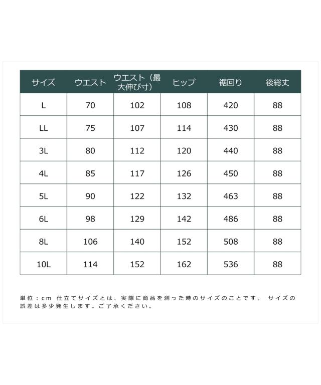 品質=ポリエステル100% [裏地]有(総裏) ウエスト総ゴム入透け感:なし(表地と裏地の境目に透け感あり) 伸縮性:なし( 裏地はカットソー素材なのであり) 生地の厚み:薄い 光沢感:なし 裏地:あり ポケット:なし ウエスト:総ゴム 季節:春・夏・秋・冬向き シルエット:普通 原産国:中国製 備考:洗濯機OK ネット使用 ※単位:cm ※仕立てサイズとは、実際に商品を測った時のサイズのことです。 ※サイズの誤差は多少発生します。ご了承ください。