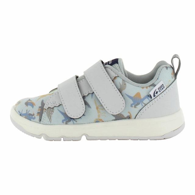 「こどもの足にいいことぜんぶ」の想いから生まれた機能シューズ「ムーンスター キャロット」の「Kinarinoco」男の子キッズシューズです。脱ぎ履きしやすいバンドのコートタイプです。シンプルでカジュアルなファッションに合わせて親しみやすい一足です。わくわくするようなポップな恐竜柄素材使いがポイントです♪子どもの足の正しい成長をサポートする「4大機能(つま先ゆったり、カウンターボックス、フレックスジョイント、洗えるインソール)」により、健やかな成長を促します。中敷きにはサイズ選びに役立つ「サイズめやすゾーン」を搭載しています。重さは16.0cmで片足約110gです。【つま先ゆったり】つま先にゆとりを持たせた形状で、足の指を圧迫せずにのびのび動かせます。【洗えるインソール】足裏になじみ、取り出して洗濯ができるので靴内を清潔に保てる中敷きです。 【カウンターボックス】子どもの柔らかくゆがみやすい足を箱型構造でしっかり支えます。【フレックスジョイント】足の曲がりと同じ位置で靴が曲がる設計で、足に余計な負担をかけません。【Ag+抗菌防臭】銀イオンの抗菌作用でにおいのもととなる菌の増殖を抑制。