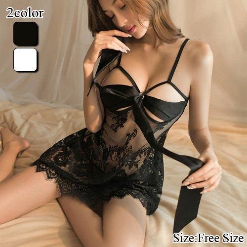 【グラシア】 ベビードール ベビド セクシー ランジェリー 下着 ネグリジェ リボン 可愛い 刺繍 愛らしい 色気 繊細 大人 透け感 レース バックスタイル ブラック ホワイト フリーサイズ