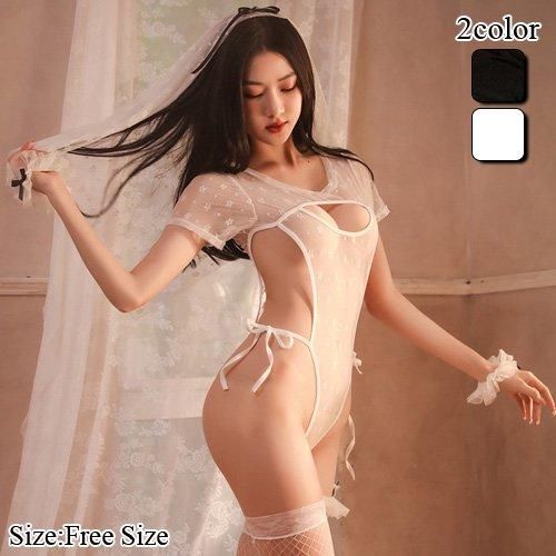 【グラシア】 テディ インナー ナイトウェア レディース セクシー ランジェリー 下着 クロッチ ハイレグ ボディライン 花柄 大胆 レース ブラック ホワイト フリーサイズ