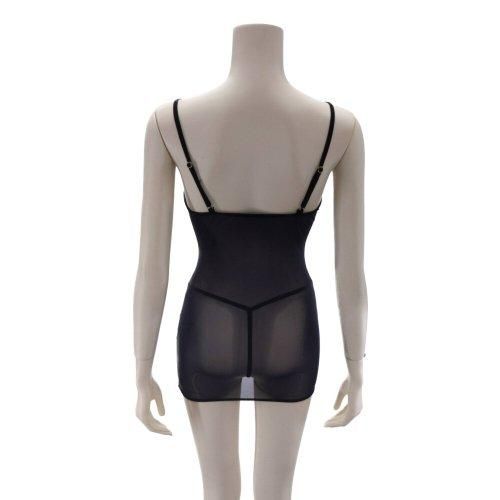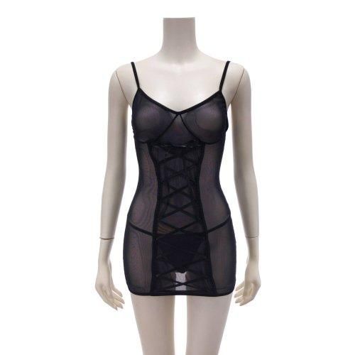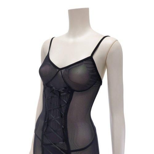 アンダーバストから裾にかけてのレースアップをタイトに調整すればボディラインを強調でき、全体のメッシュ素材が見えそうで見えないから余計に高揚感が高まります。