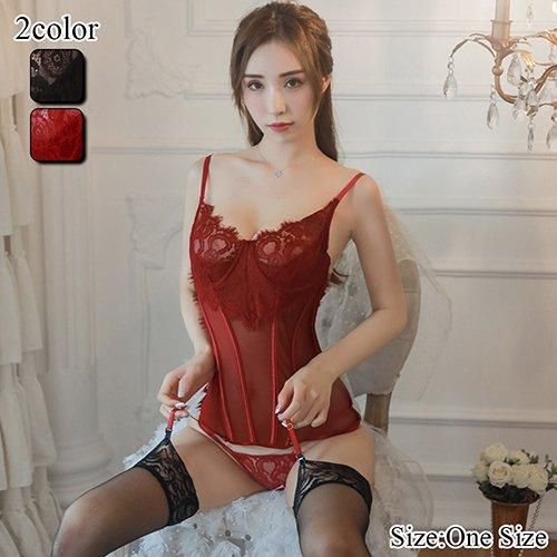 メッシュ生地にアイラッシュレースを合わせた美しいボディラインを作ることが出来るガーターランジェリーです。