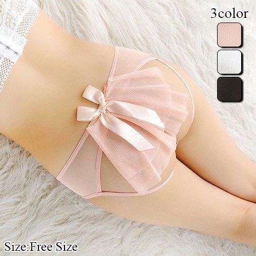 【グラシア】 ショーツ 下着 レディース 単品 パンツ セクシー インナー クロッチ チュール フレア メッシュ リボン 愛らしい 透け感 ブラック サーモンピンク ホワイト フリーサイズ