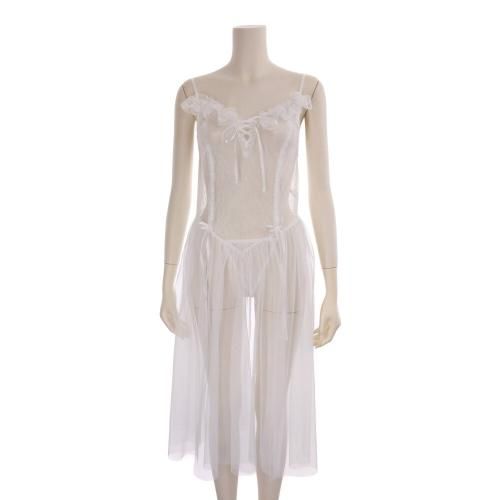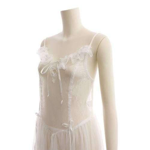 繊細なレースとチュールのドッキングでドレッシーに仕立てたロング丈ベビードール。