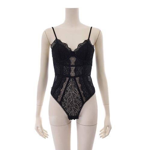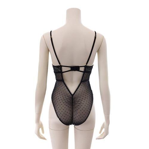 ドット柄とアイラッシュレースの小花柄が繊細さを漂わせ透け感が全体的に有りバックスタイルからもフェロモン溢れるアイテムです。