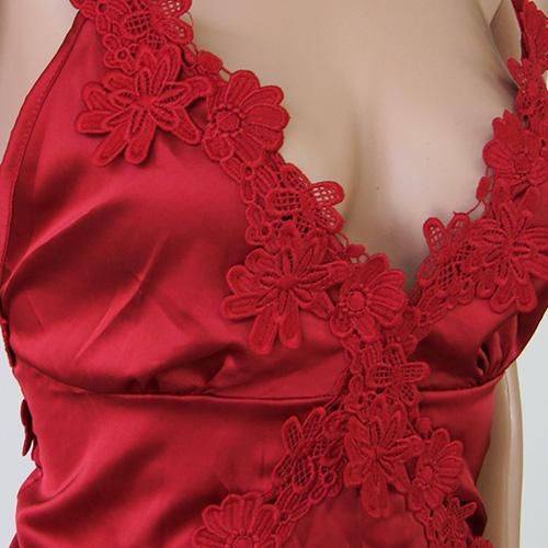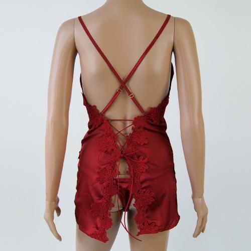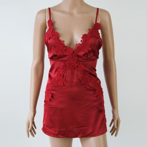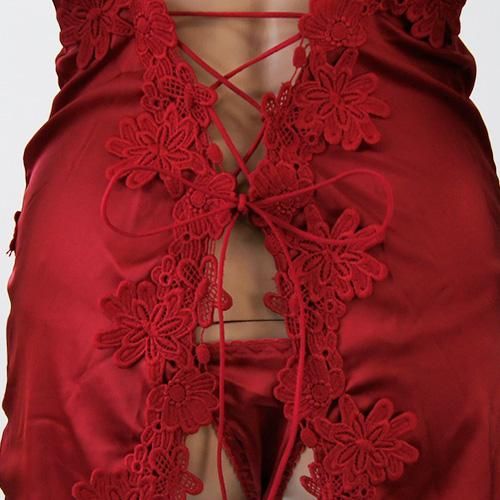 【グラシア】 ベビードール ベビド セクシー ランジェリー 下着 ネグリジェ カット サテン フェミニン レースアップ 刺繍 高級感 フラワー レース 艶やか レッド Mサイズ