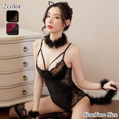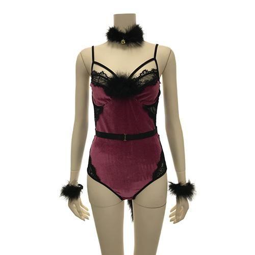 セット内容 : セクシーテディ、ベルト、チョーカー、カチューシャ、アームリング 5点(※ストッキングは付属しません)