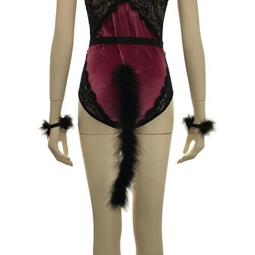触り心地の良いファーで仕立てた尻尾やチョーカーなどはキュートな猫ちゃんの雰囲気をプラス。