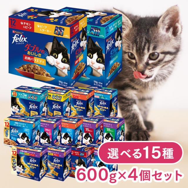 【4個セット】 フィリックス 猫 パウチ フィリックスパウチ キャットフード 猫フード ウェット ピュリナ やわらかグリル 隠し味ゼリー ソース ダブルのおいしさ バラエティ 50g×12袋 12474145 子猫 成猫 シニア トッピング バラエティセット