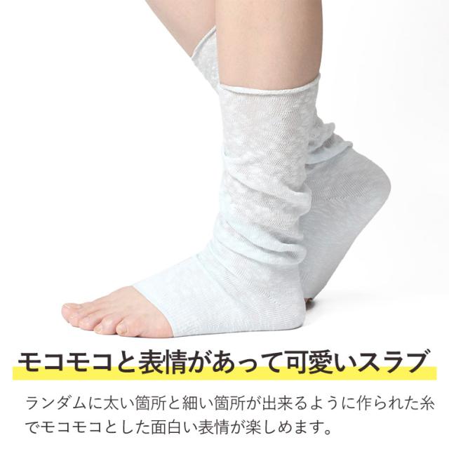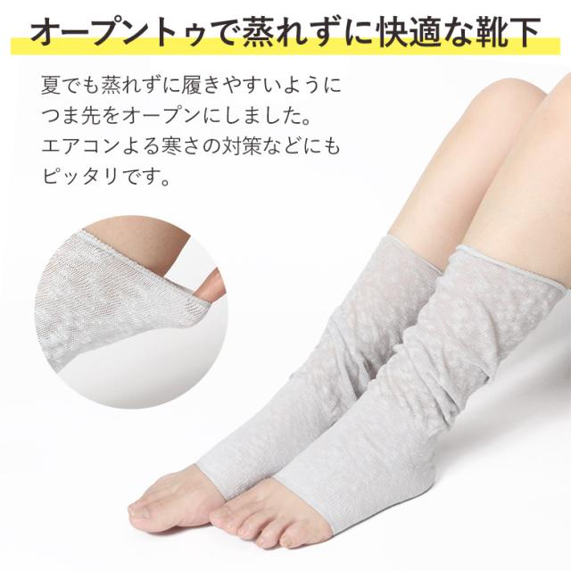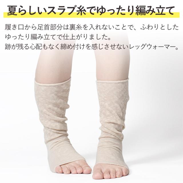 ゆったりオープントゥ レッグウォーマー 夏用 冷房対策 スラブ綿糸 蒸れない ムレない 足首 ルーズソックス 夏 エアコン 冷え性 ルームソックス夏用 日本製 ★624 太陽ニット
