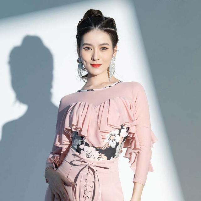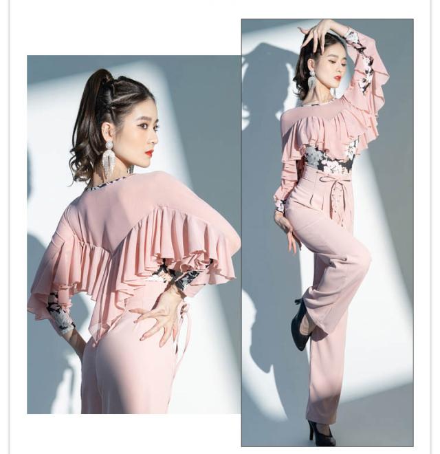 社交ダンス ダンスウェア レオタード フラメンコ レディース パット付き 長袖 ピンク ネイビー ラテン モダン チャチャチャ ダンスウェア ダンス衣装 フリルトップス フリル 練習着 競技 ダンス大会 レッスン着 レッスンウェア dm624c0zu